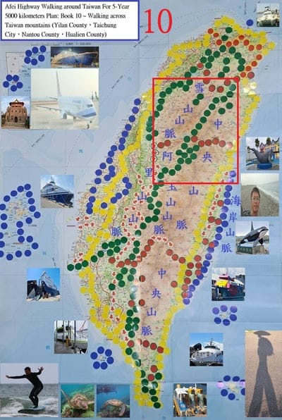 Afei Highway Walking around Taiwan For 5-Year 5000 kilometers Plan. Book 9, Walking across Taiwan mountains (Taipei City,New Taipei City,Taoyuan City,Yilan County)